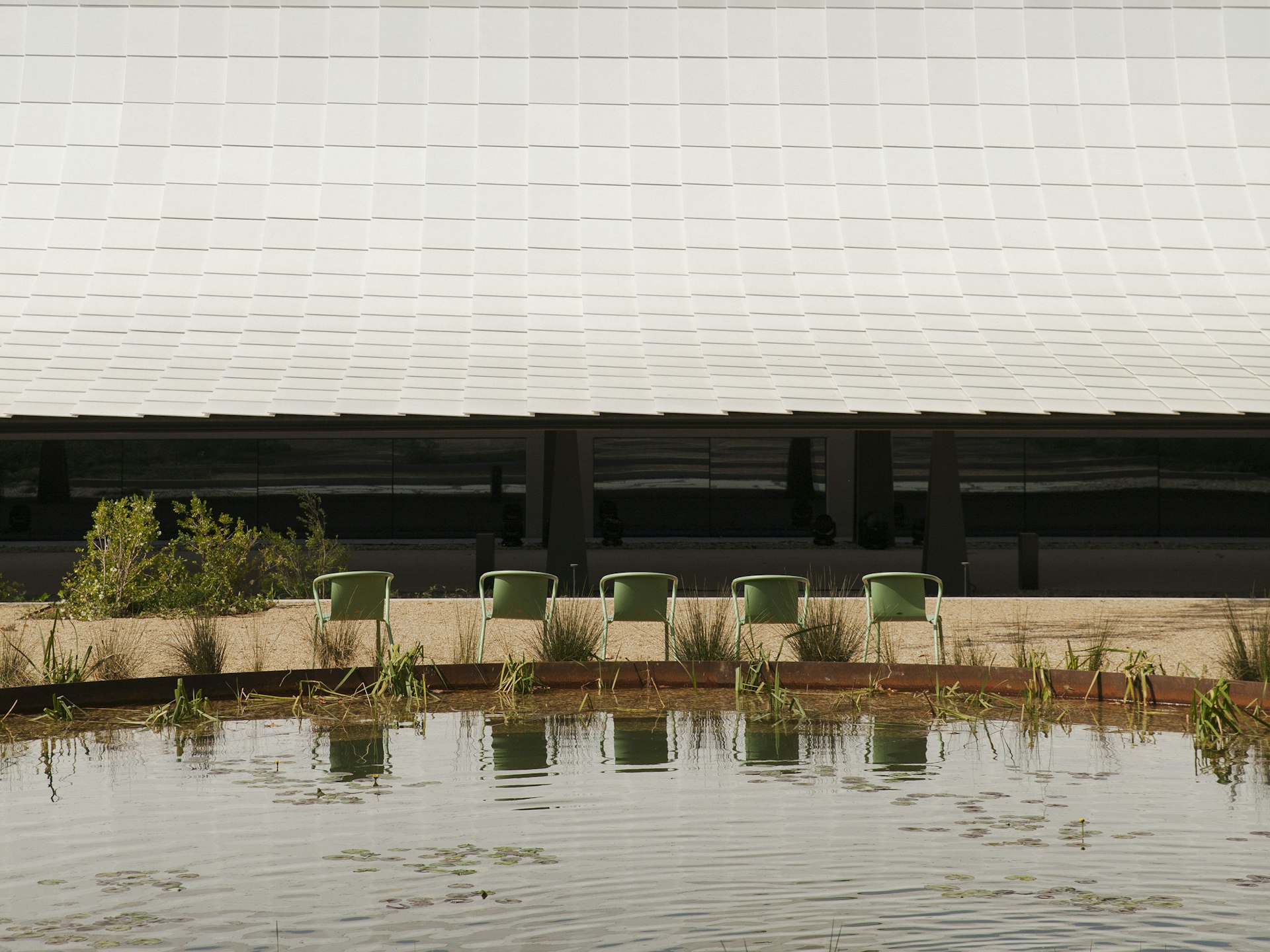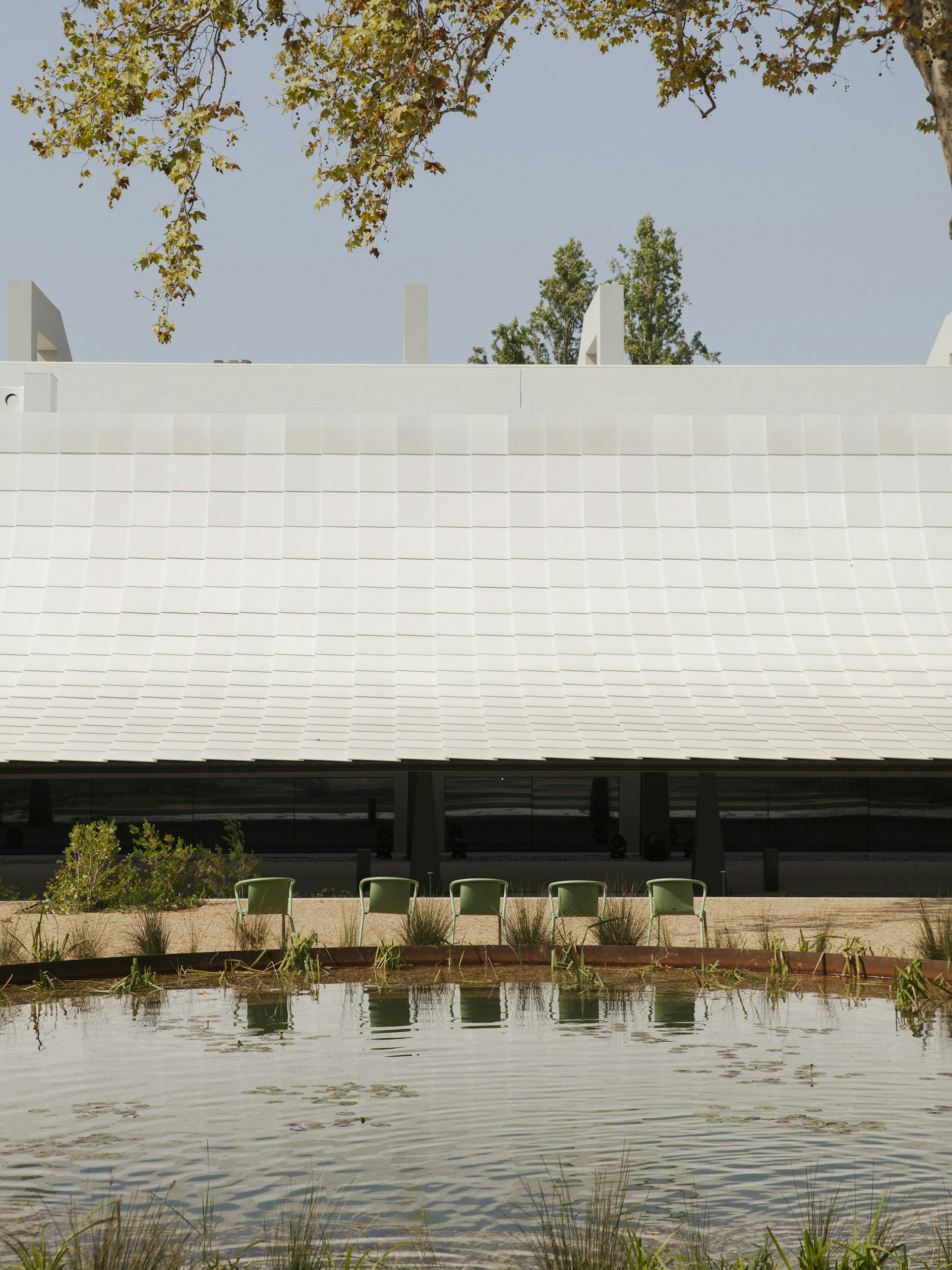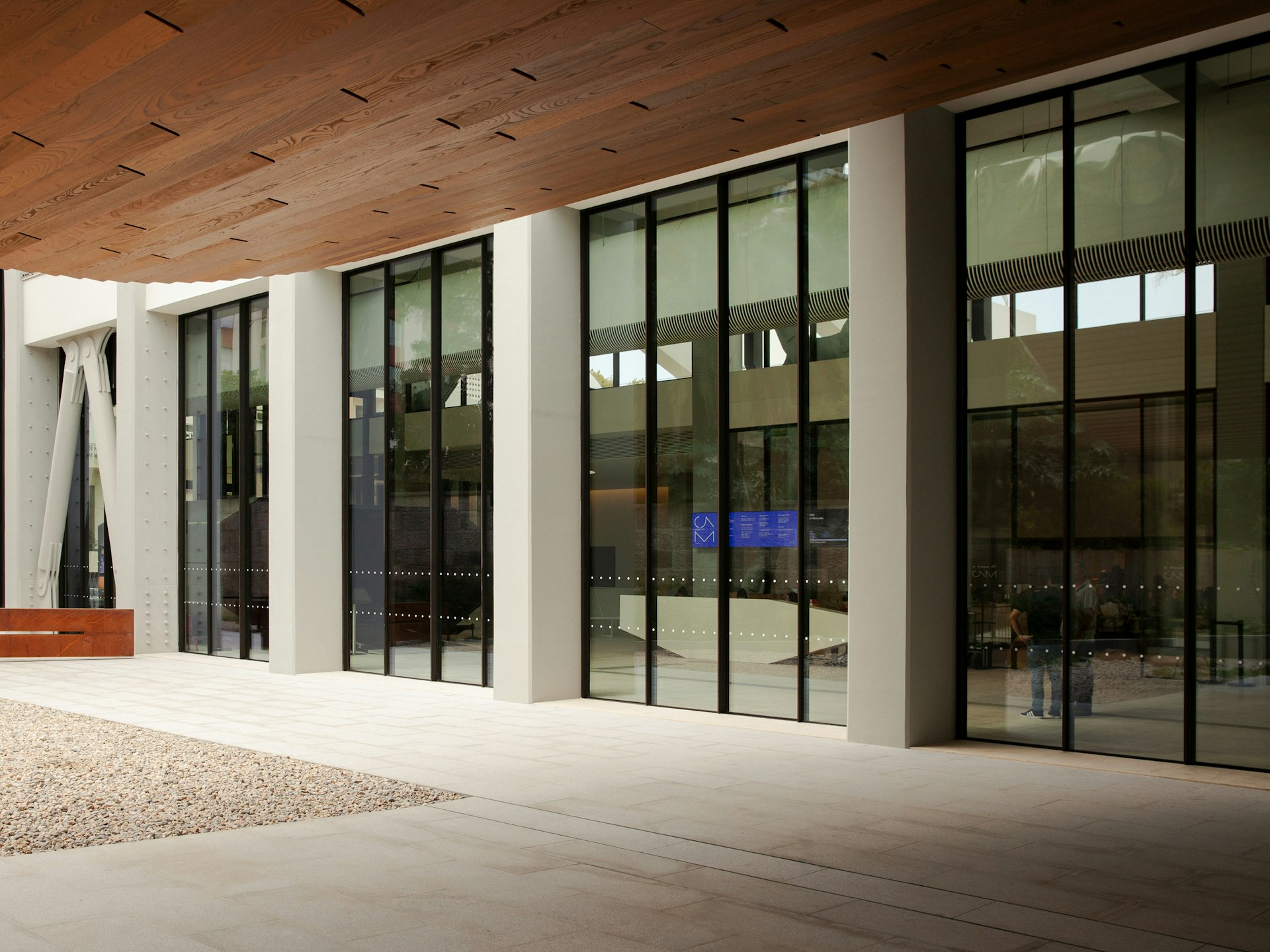 The letter A within the CAM logotype echoes the curved, canopy-like forms of the new building. The architecture is inspired by the concept of 'engawa', a principle common in Japanese buildings that connects interior and exterior spaces. This idea captures the connection between the museum and its gardens, and between the institution and the wider city.