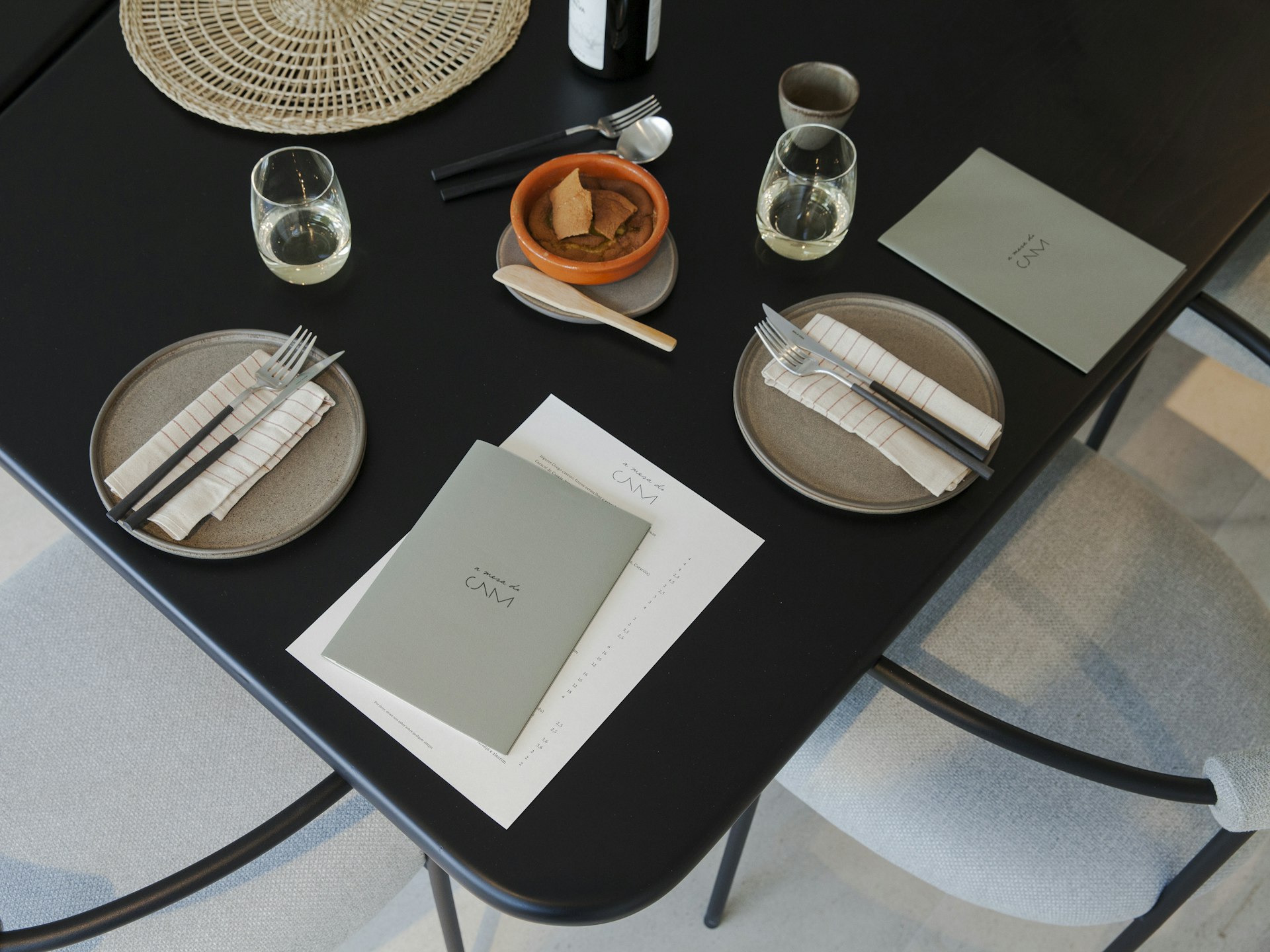 The visual identity reflects the restaurant’s values of seasonality and camaraderie. A handwritten lock-up paired with the geometric CAM logotype introduces an organic dimension, while a serif typeface gives the restaurant a distinct voice across materials including signage and menus.