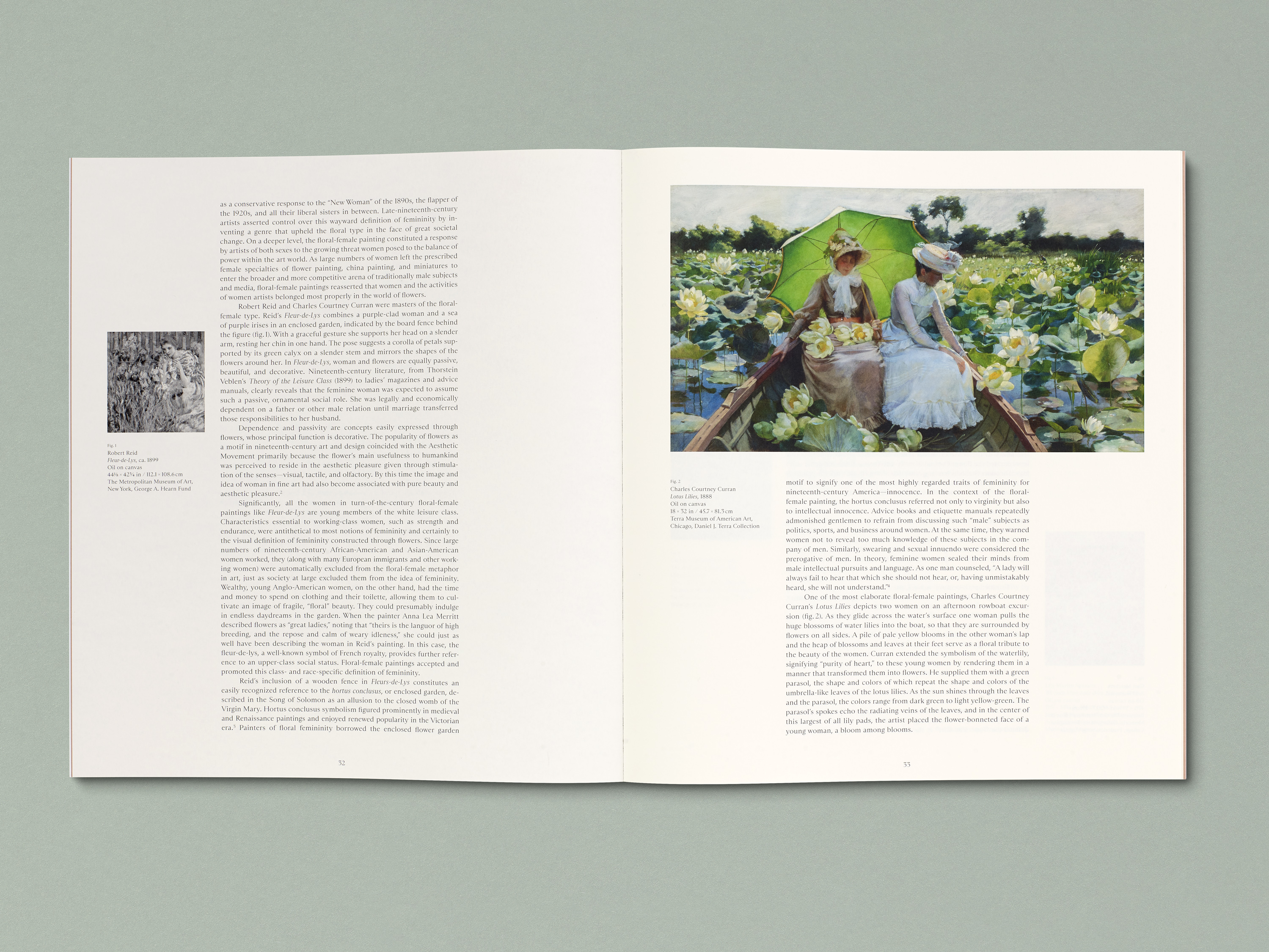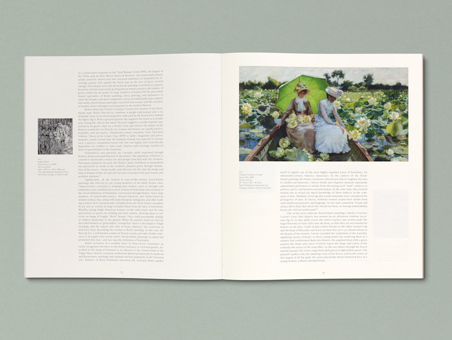 Early twentieth-century artist monographs informed the layout, with large plates, full bleed details and endpapers, alongside traditionally set typography. The bespoke Nomenus masthead features a ligature linking the N and U, while the expressive serif Sainte Colombe is used for body text and captions.