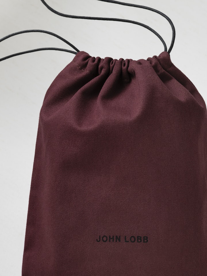 Surface finishes reference the physical processes of shoemaking, while embossed textures echo the rasps used to soften leather. Fine flecks printed across tissue papers recall fragments left behind during making, acknowledging the hand-finishing behind John Lobb’s artisanal footwear.