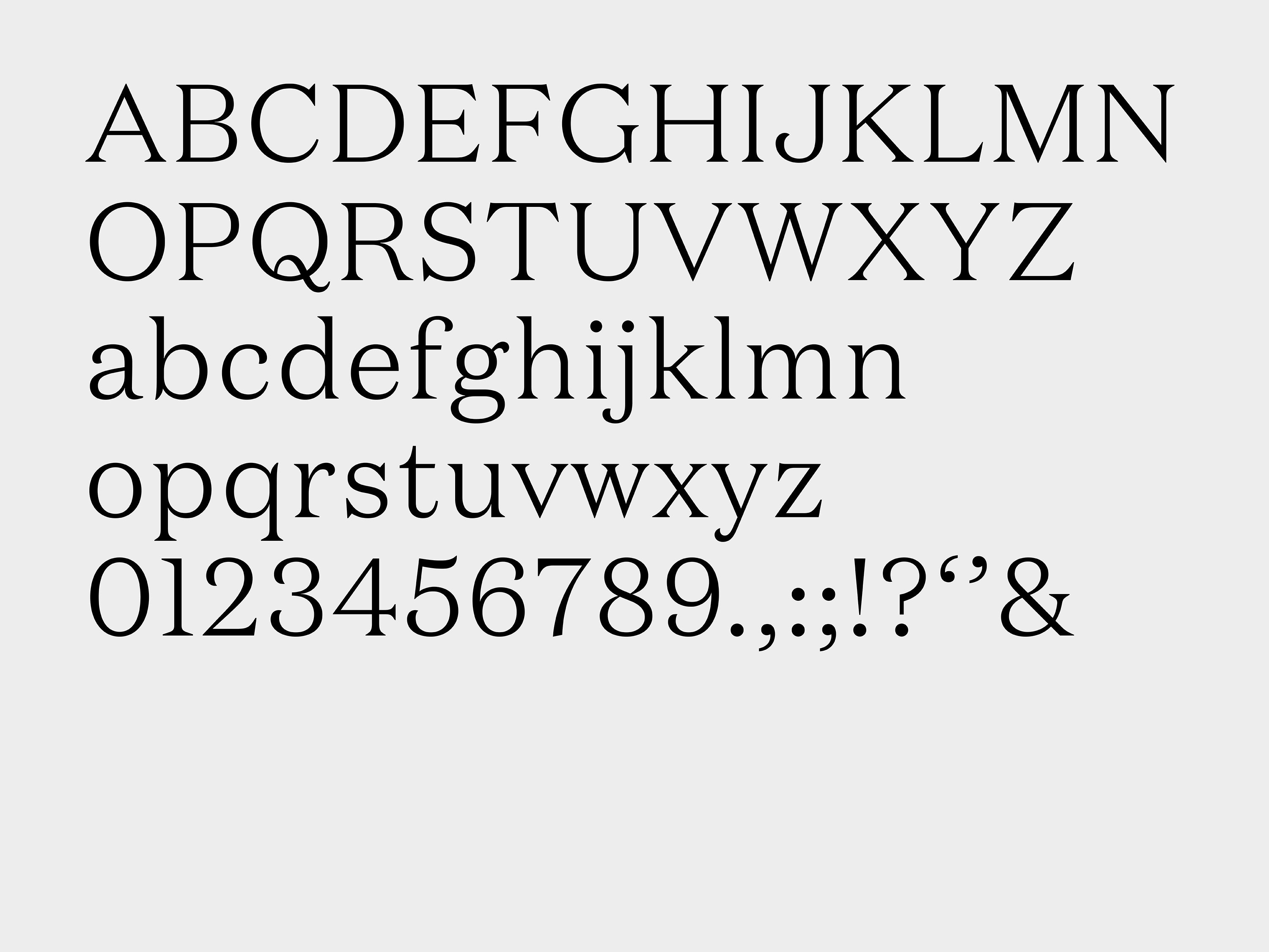 The brand’s primary typeface, Domaine Text, is designed by Klim Type Foundry. Its curvaceous detailing draws on the Latin genre, while its underlying structure is rooted in Scotch Roman.