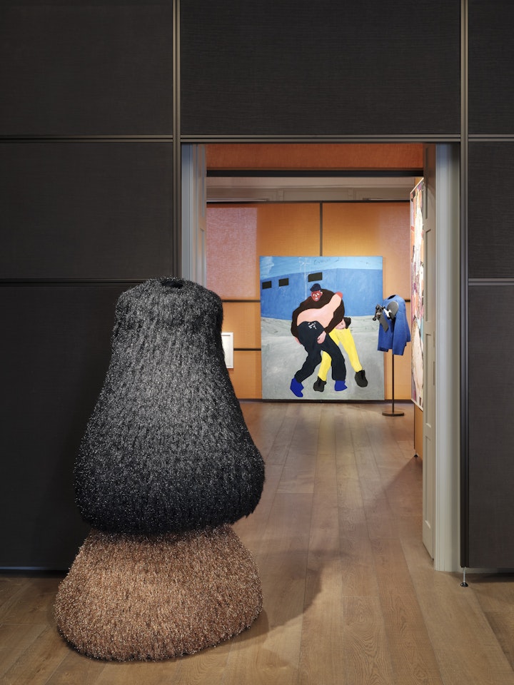 Within the galleries, Anderson’s fashion designs are brought into dialogue with works by contemporary British artists, from Lucien Freud to Lynette Yiadom-Boakye and Magdalene Odundo.