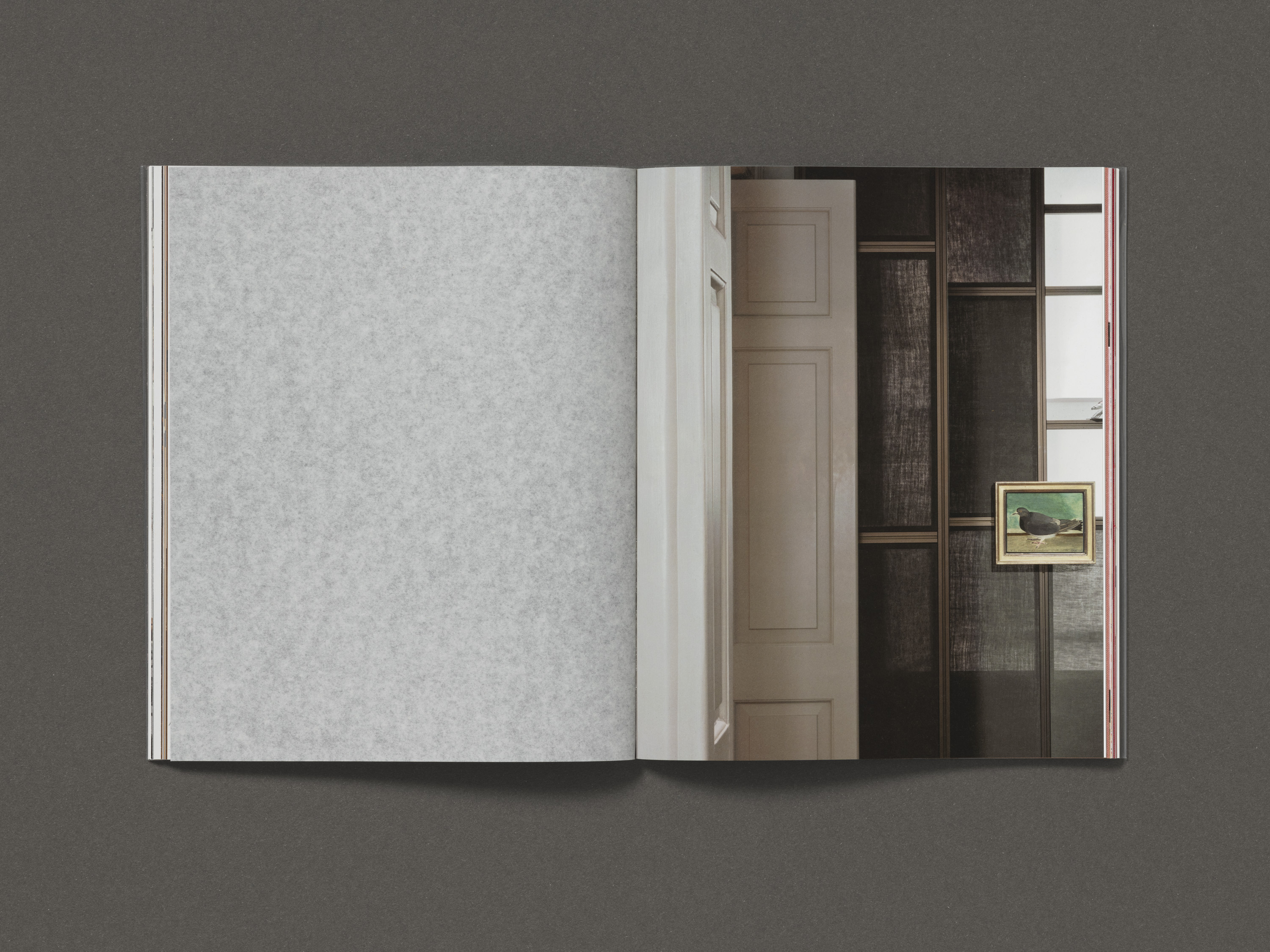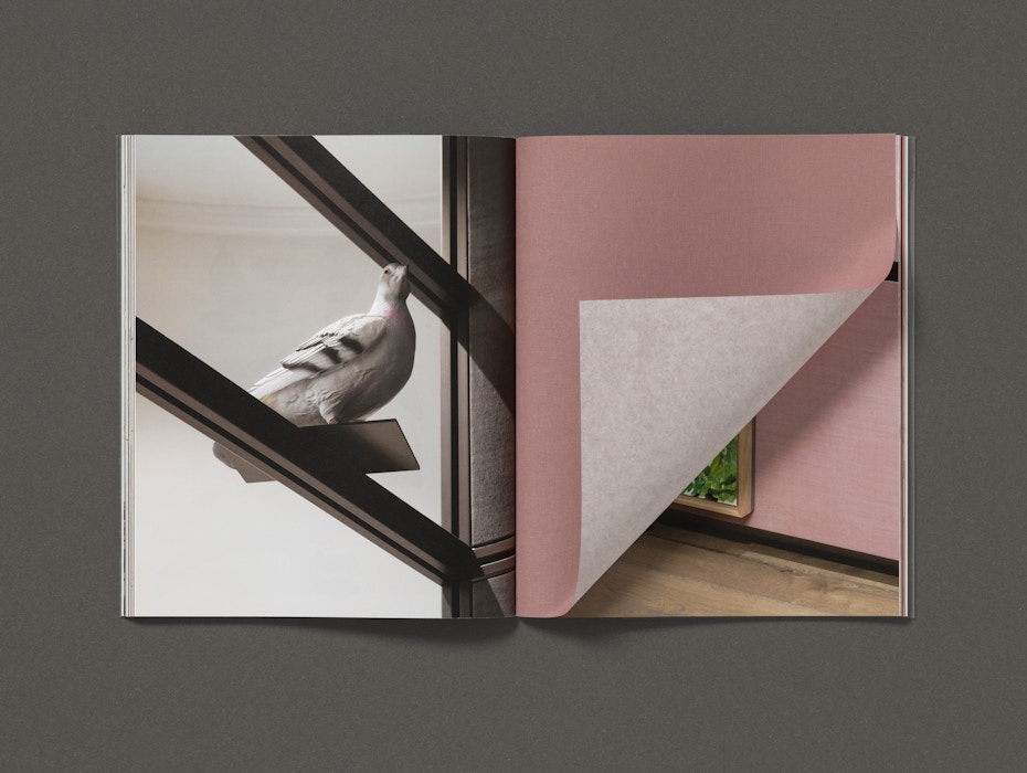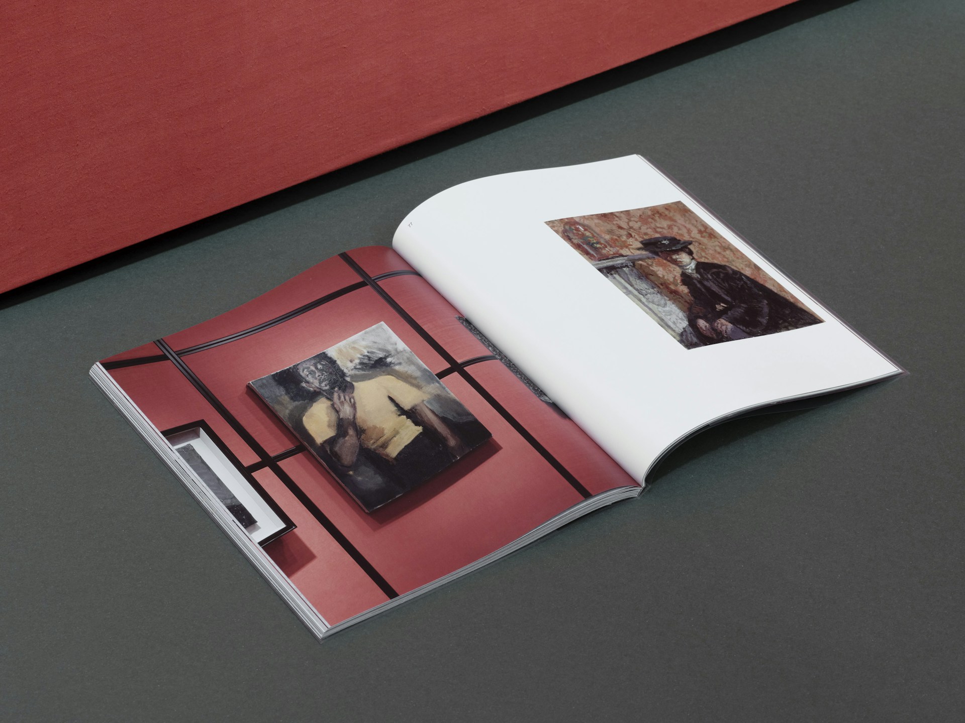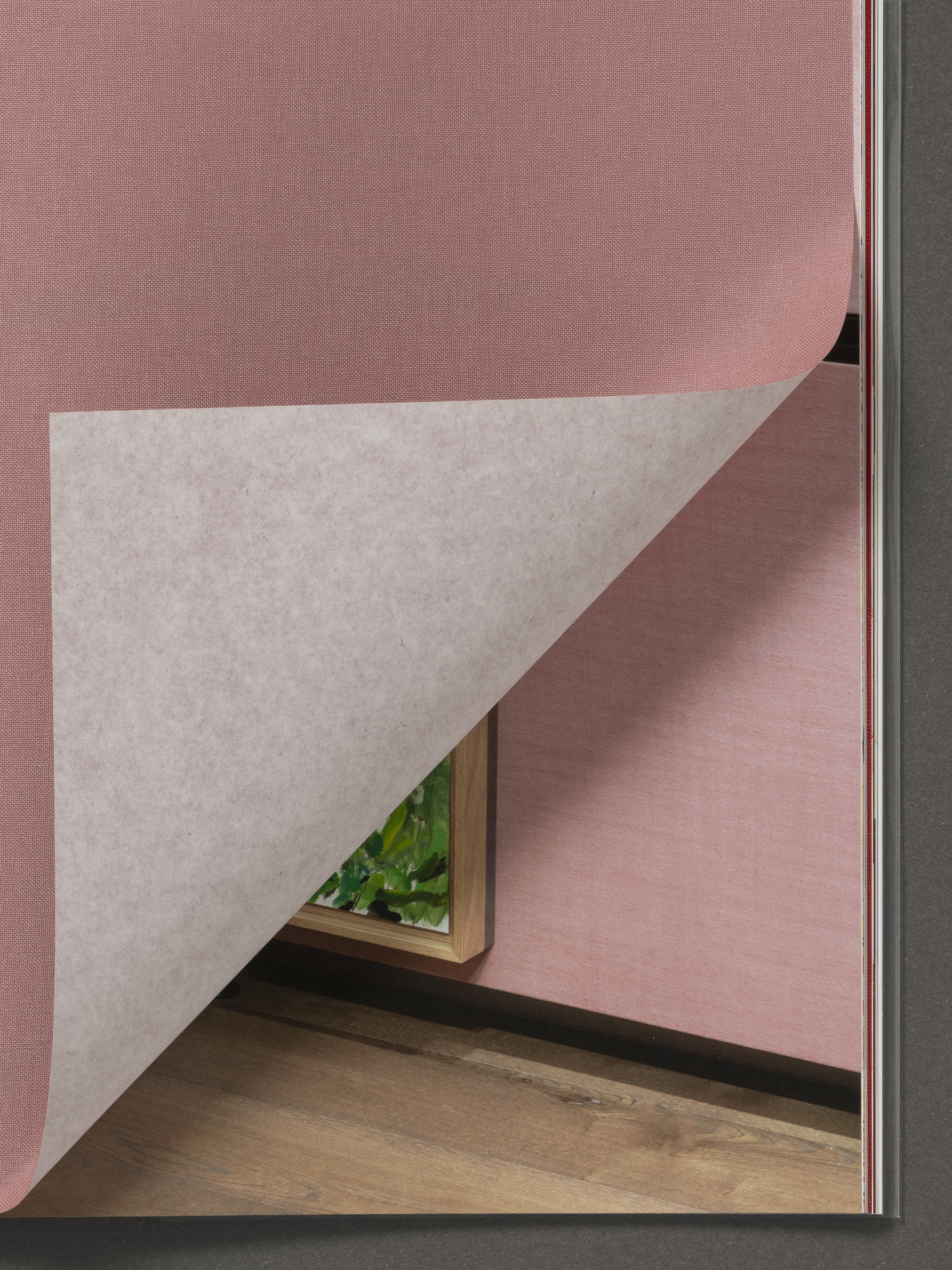 The cloth functions as coloured tip-ins between the book’s sections, matching the hand-dyed linen fabric which lines the walls of the exhibition. The image layout combines plates and installation photography by Thomas Adank to create an unexpected visual essay that mimics the exhibition hang.
