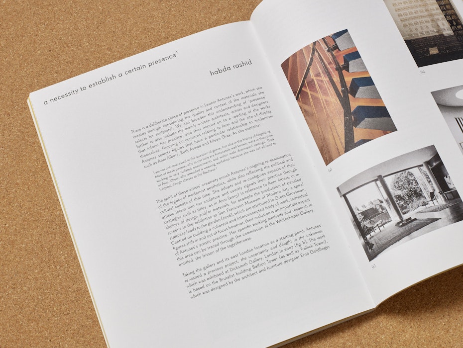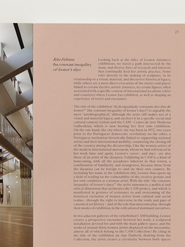 This publication builds on an exhibition at CAM – Centro de Arte Moderna Gulbenkian, where Antunes created a layered dialogue that interweaves narratives and practices. Across two levels, her sculptures reshape the gallery architecture using cork, wood, glass and leather. Works from CAM’s Collection are presented within bespoke structures inspired by women designers including Franca Helg, Charlotte Perriand and Lina Bo Bardi.