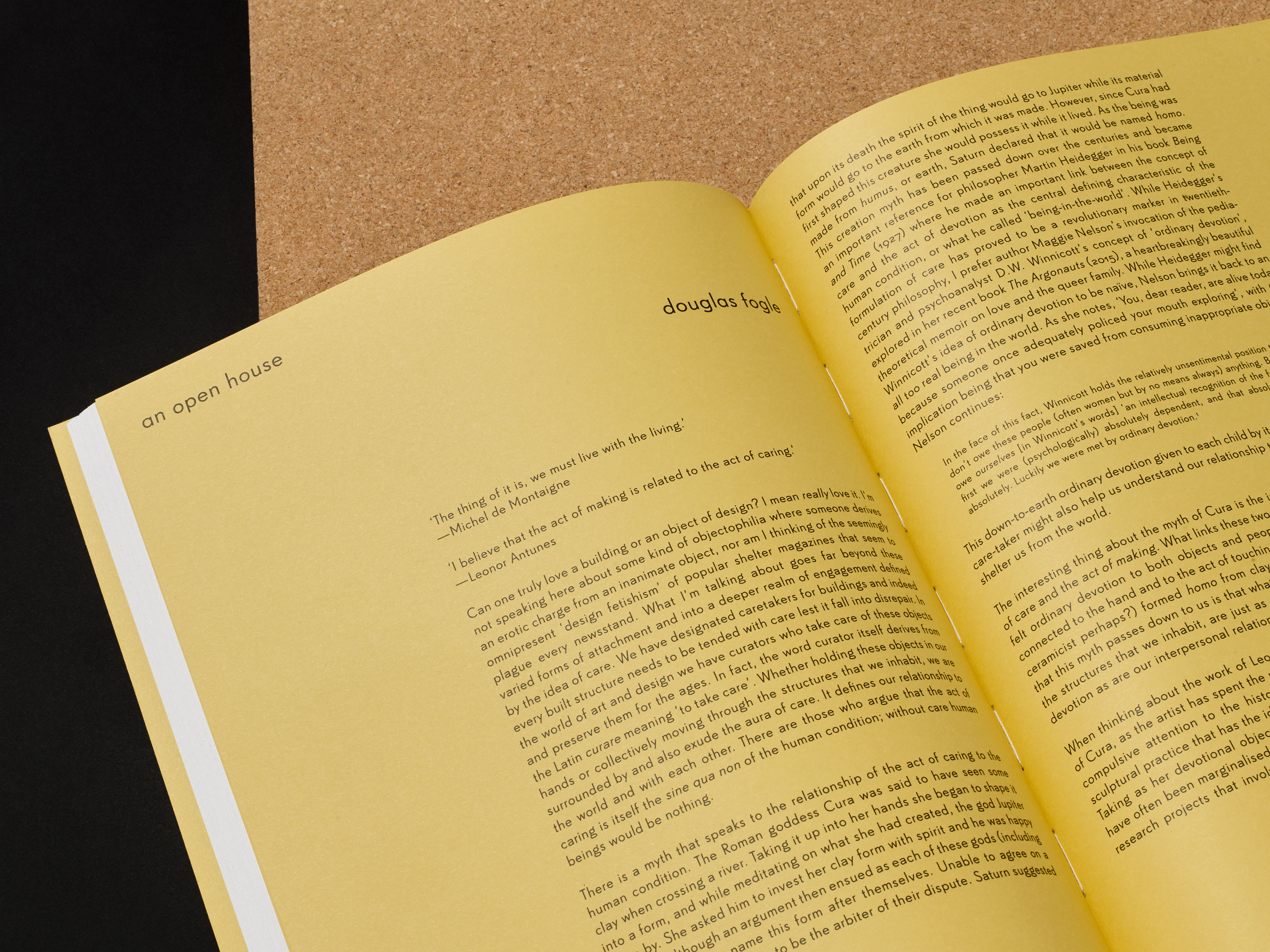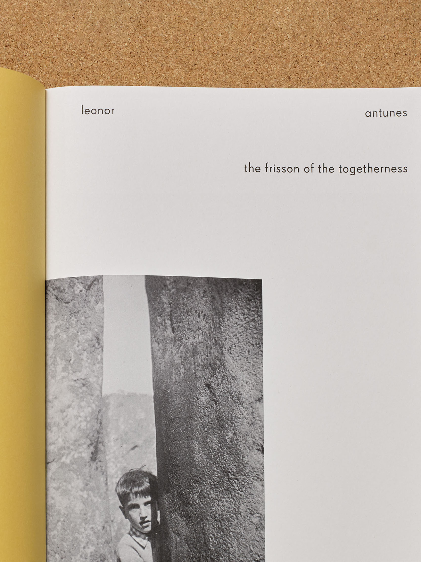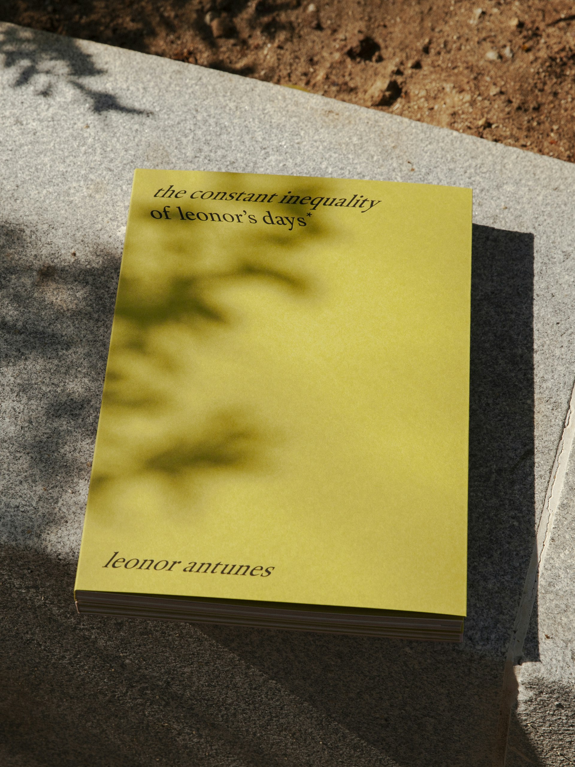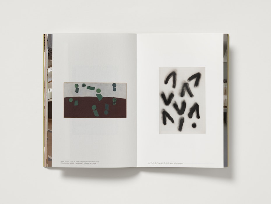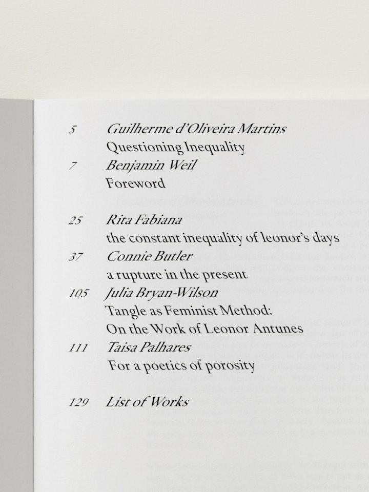 The layered references within Antunes’s installation are carried into the book’s design. Small-scale, loose-leaf materials relating to Martin and Nogueira are bound into the publication. These are enclosed in an acetate jacket that recalls an archive sleeve, while colour and typography draw on Martin’s artistic practice. To document Antunes’s works, title pages and spreads from her earlier catalogues are reproduced at 1:1 scale, giving the book a deliberately ephemeral character.