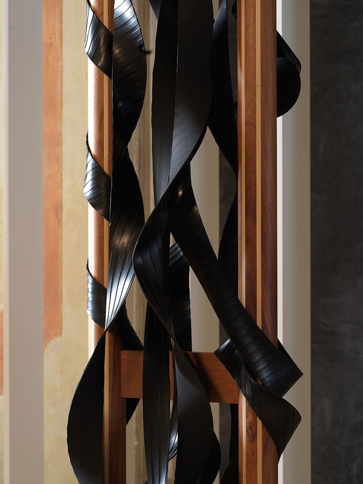 Leonor Antunes gathers references to overlooked figures within twentieth-century architecture, art, and design. Often focusing on women, her artistic practice is concerned with specific forms of craft and with the bringing together of styles to define an identity.
