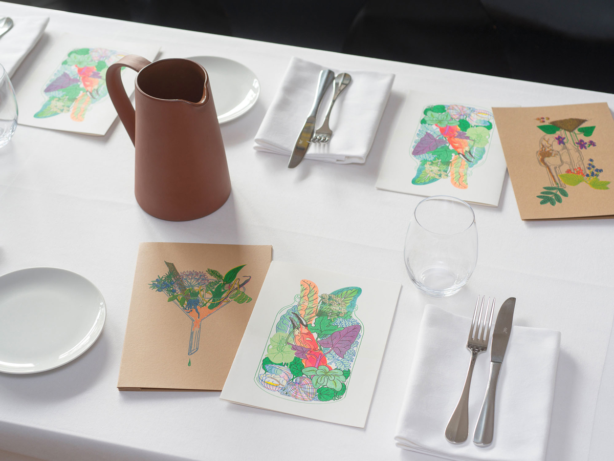 For the cover of the book, a dark blue image of one of the larger sculptures in the hotel is printed on a dark, textured paper stock, accented with foiled type in reference to the metallic interior fittings throughout the hotel. Images are reproduced at a large scale, interspersed with coloured inserts depicting archive material. The book is typeset in varying weights of Folio, an often overlooked realist sans-serif typeface first released in the 1950s, whose subtly harsh edges and inconsistencies chime with the aesthetic of the building’s façade.