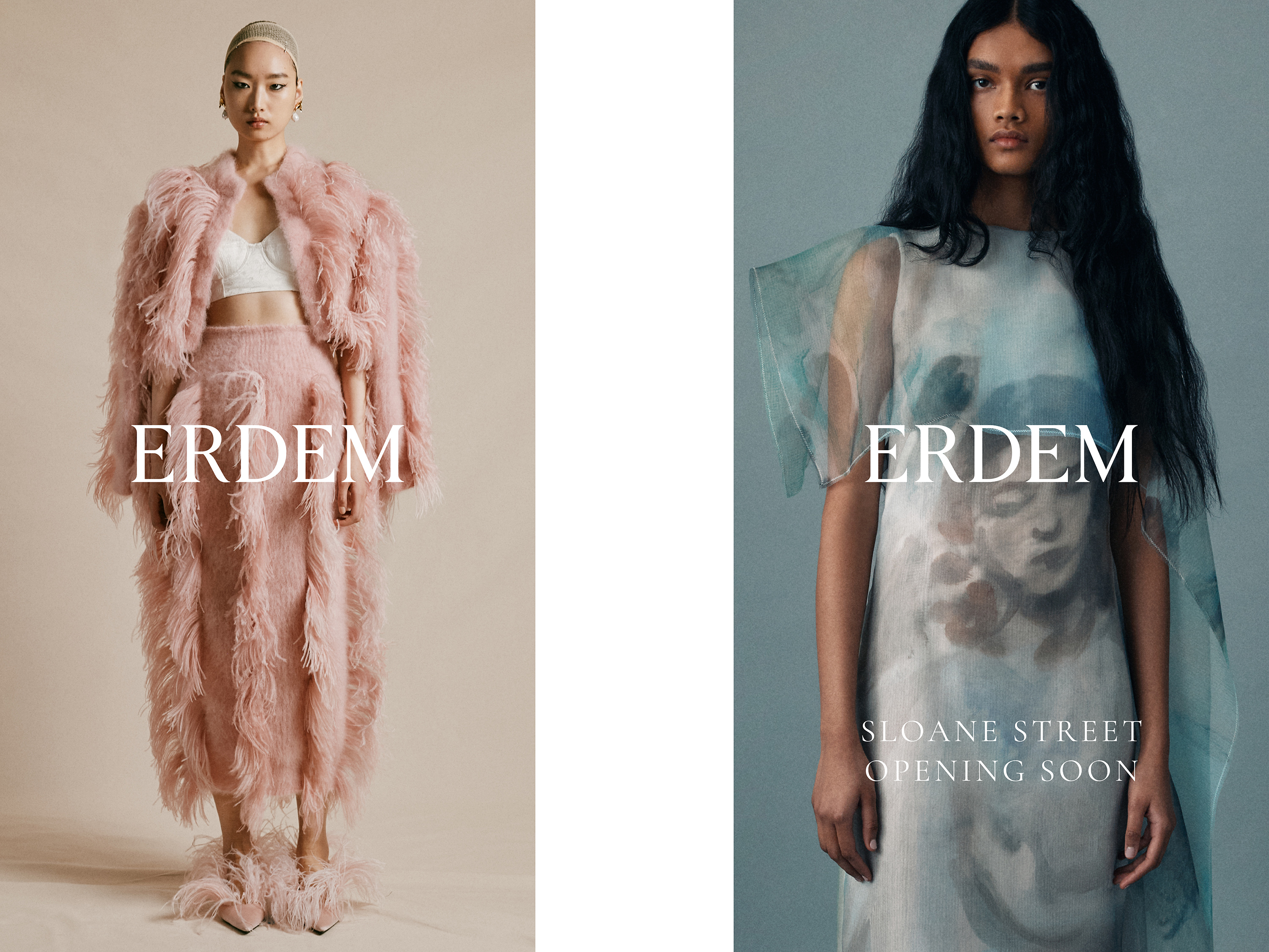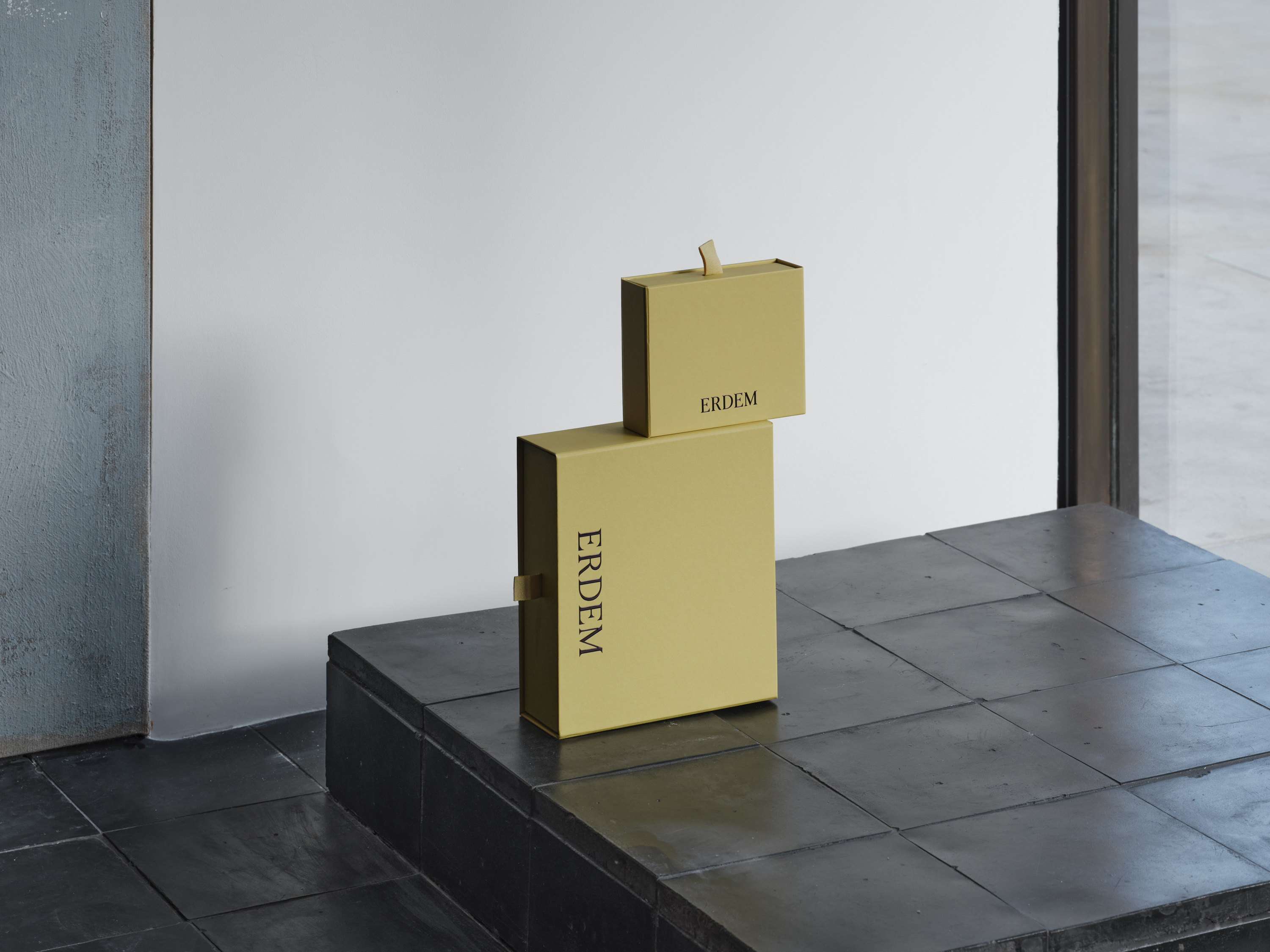 Garments are wrapped in glassine paper – which is more commonly used for preserving artworks – featuring a self-portrait by artist Ilse Bing (1899–1998), in which she is both photographer and muse. Influenced by Erdem’s layering of historic and contemporary inspirations in his designs, the packaging also includes quotations by Emily Dickinson (1830–86).