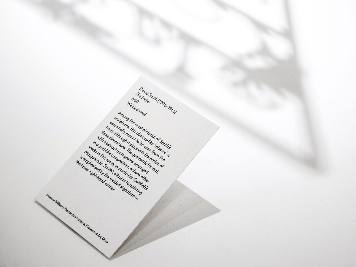 We collaborated with David Chipperfield Architects on the design of the exhibition, developing a graphic scheme characterised by clear, fine and formally robust typography. We chose Bill Corporate Hairline for headings, which was applied as pin-mounted metal lettering for the title of the exhibition; while section titles and interpretation texts were screen-printed directly onto the gallery walls. To complement the natural light that David Chipperfield Architects’ design introduced into the space, we chose tactile, textured paper captions, contributing a sense of softness and contrast with the large scale of the works on display.