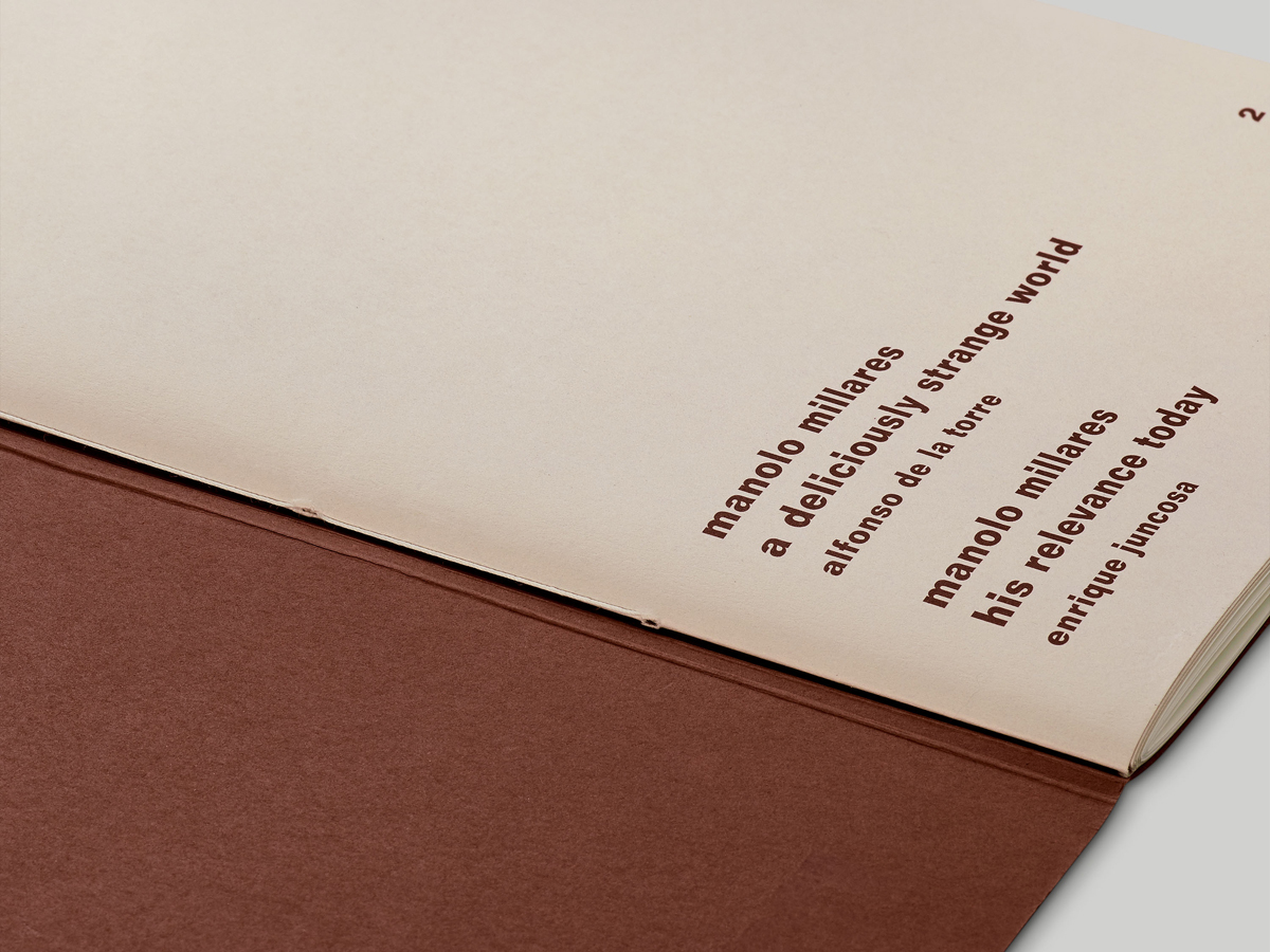 Our designs for the invitations and the exhibition catalogue draw upon the physicality of Aricò’s paintings. Representations of key works in the show are formed through the use of densely pigmented cardstock and carefully aligned die cuts, creating a tactile, layered effect. The cover for the book, with its cutout revealing the paper below, references an early publication of Aricò’s with a similar die-cut detail. Inside, texts are set in Forma, a typeface designed in Italy and first released in 1968, at the height of Aricò’s career.
