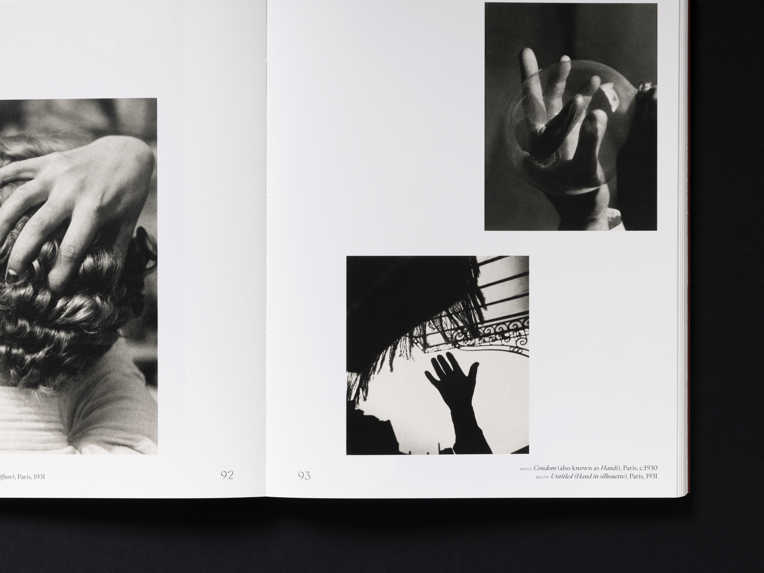 The book’s design is inspired by surrealist printed ephemera, with a playful approach to image pairings and a rich red tone on the cover drawn from surrealist journals, which were instrumental in championing photography as an art form in the 1930s.