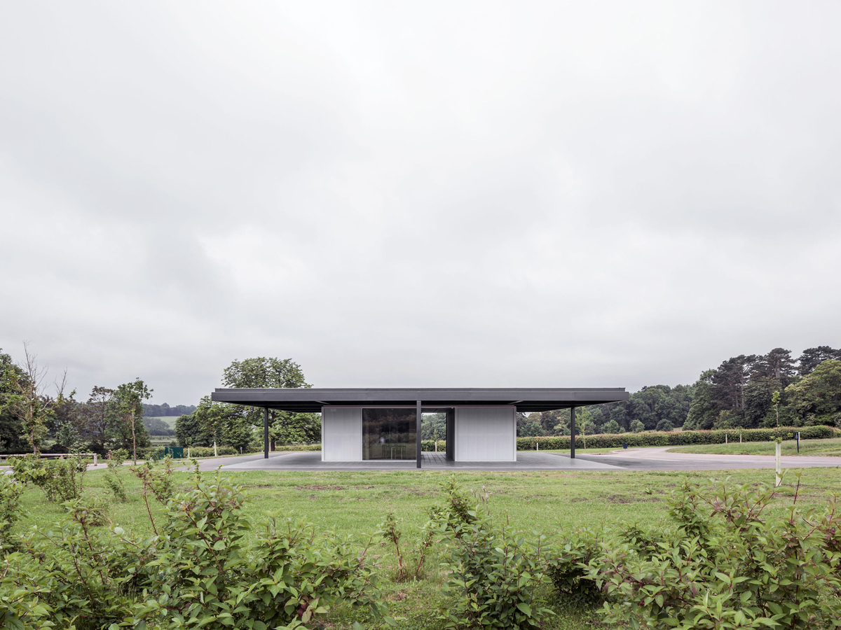 The Orchard Barn has been designed by architecture and design collective Okra. It uses almost exclusively natural materials above ground level, including Hempcrete walls, oak cladding and an unfired clay floor sourced and prepared within 10 miles of the site.