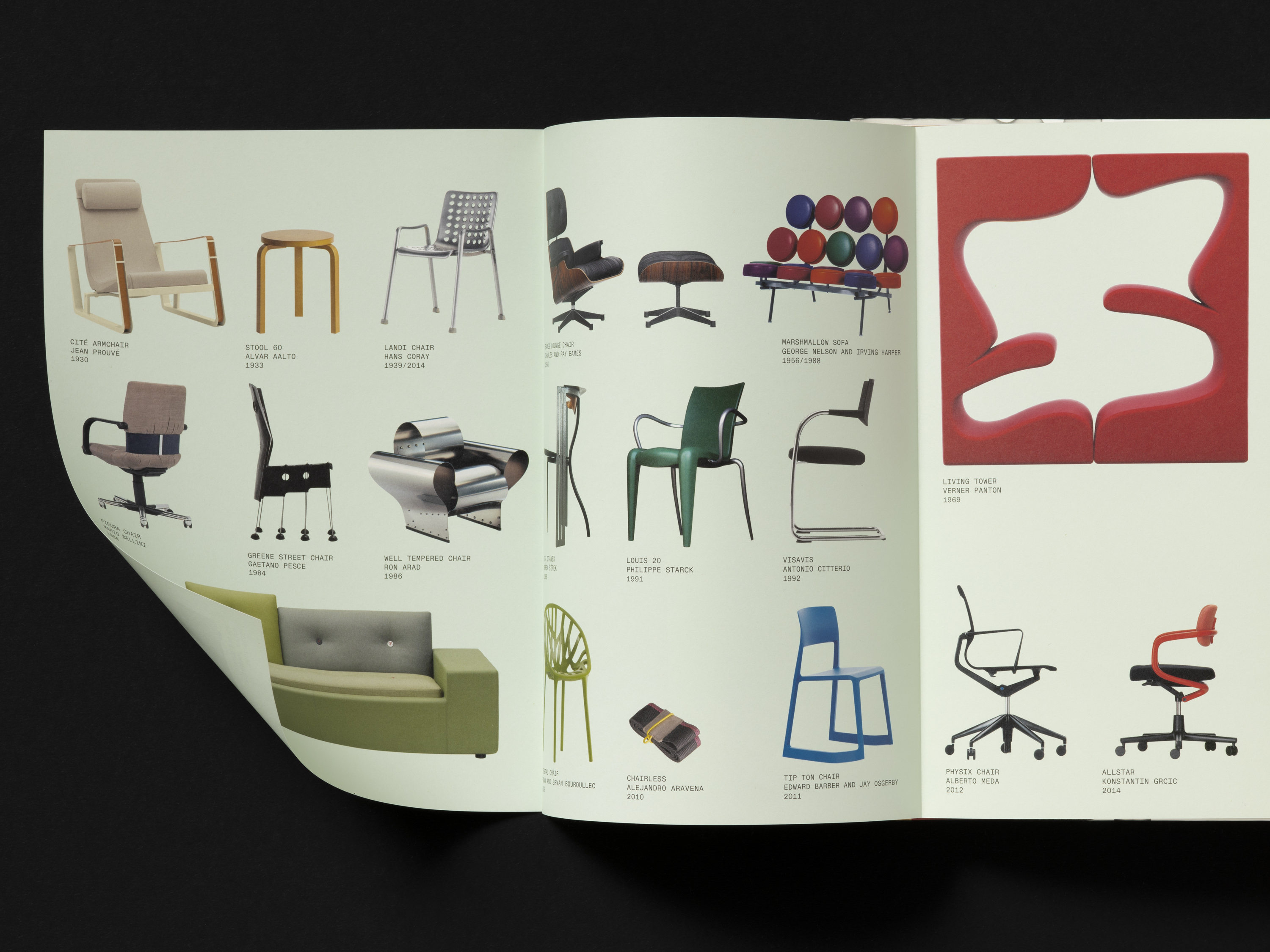 The graphic design is shaped by the idea that the book is not a monograph, but a handbook intended to inspire today’s designers – as well as future generations – in how a design company might operate. The smaller, tactile format reinforces this quality, creating a book that is both functional and beautiful: an ethos central to Vitra.