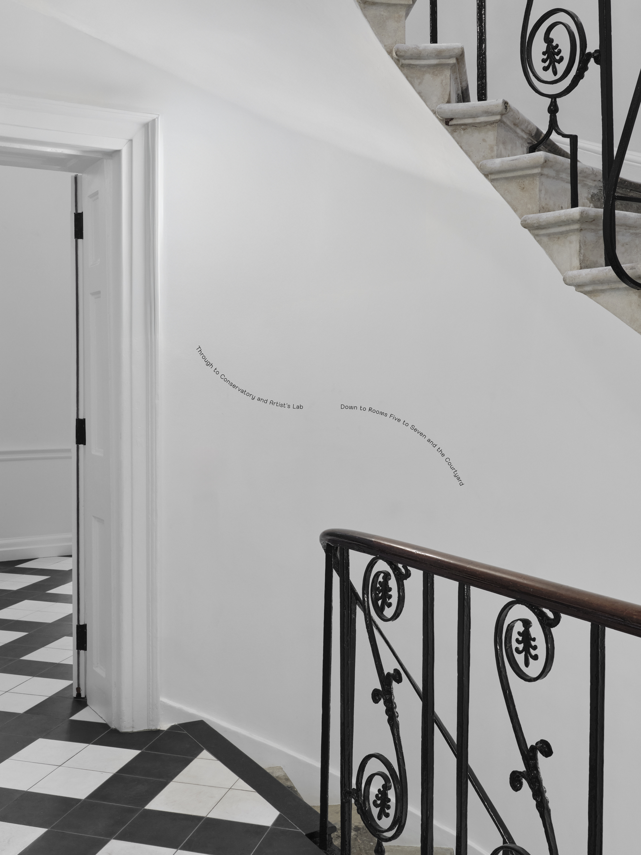 Within the space, signage is applied with restraint, in gently curved lines that guide visitors through the spaces. These curves echo the cornices and ironwork of the Grade I-listed Georgian architecture, set in a customised version of APFEL Type’s Friedel with curved characters that complement the forms of the headline typeface.